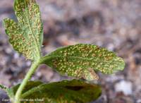 Urédosores (II) hypophylles, souvent avec des taches pâles, sous épidermique, avec un anneau de paraphyses.