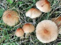 Dans l'herbe des prés, clairières gramineuses. Automne. Peu fréquent