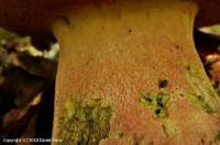 Rubroboletus satanas f. crataegi n'a pas de tonalités roses et par conséquent un pied et des pores jaunes.