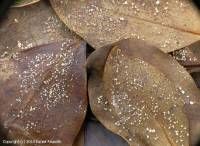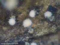 Sur feuilles, pétioles et écorce de Griselinia littoralis, arbuste d'ornement originaire de Nouvelle-Zélande. Rare.