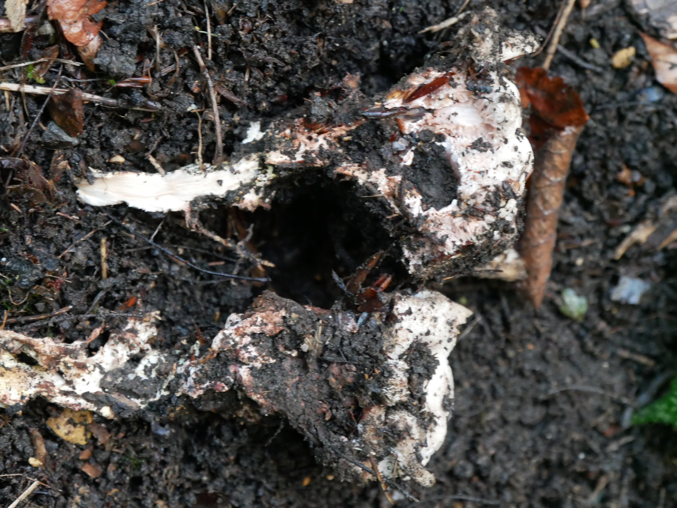 Champignon blanc, coriace, solidement enraciné 13 x 5 cm