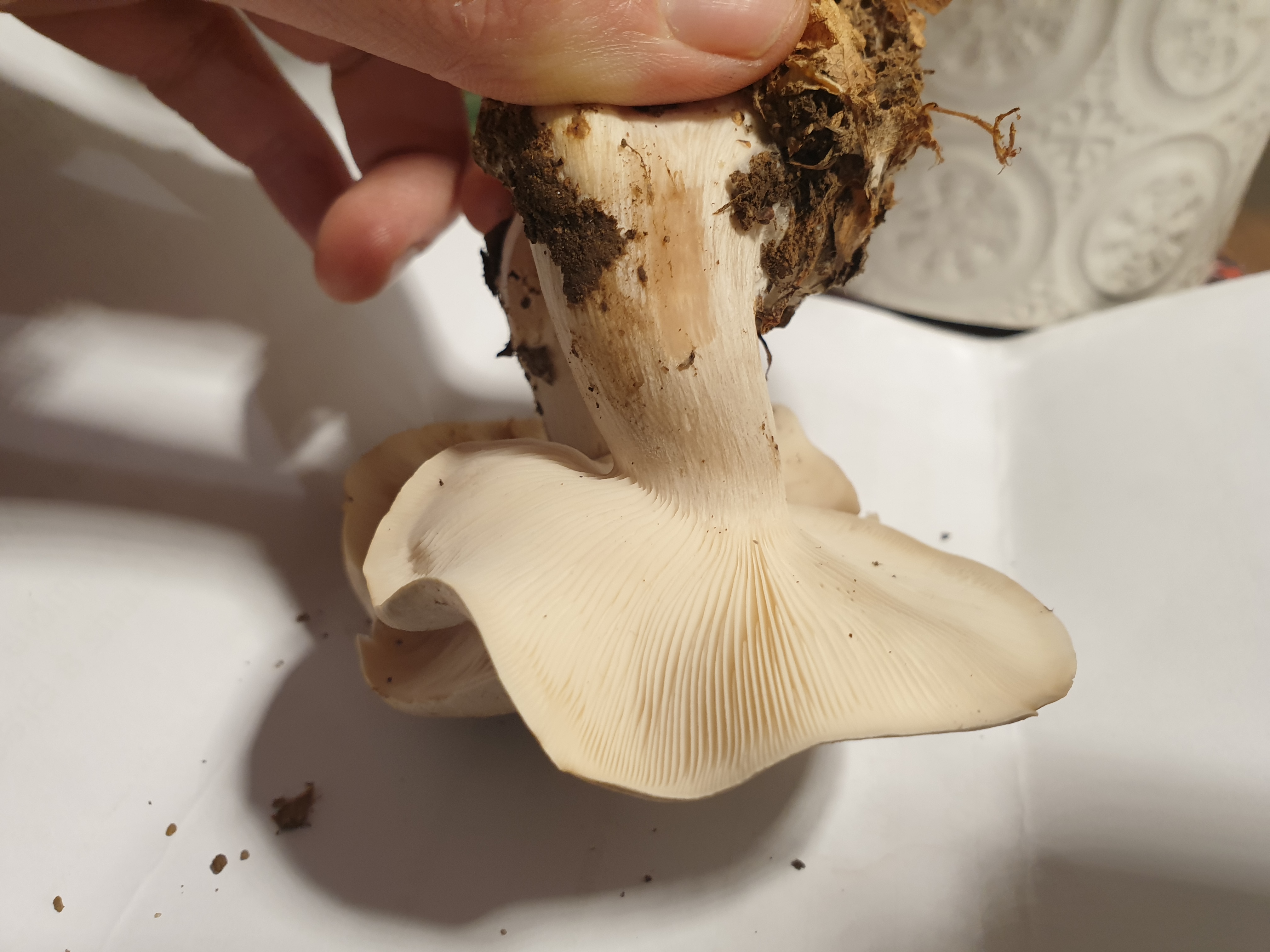 Lame adné ou très légèrement décurrente chez les exemplaires plus âgés, sporée crême, aspect "tricholomatoïde" : je suis à peu près sur qu'on est sur la famille des tricholomes, mais pour déterminer l'espèce c'est plus compliqué !