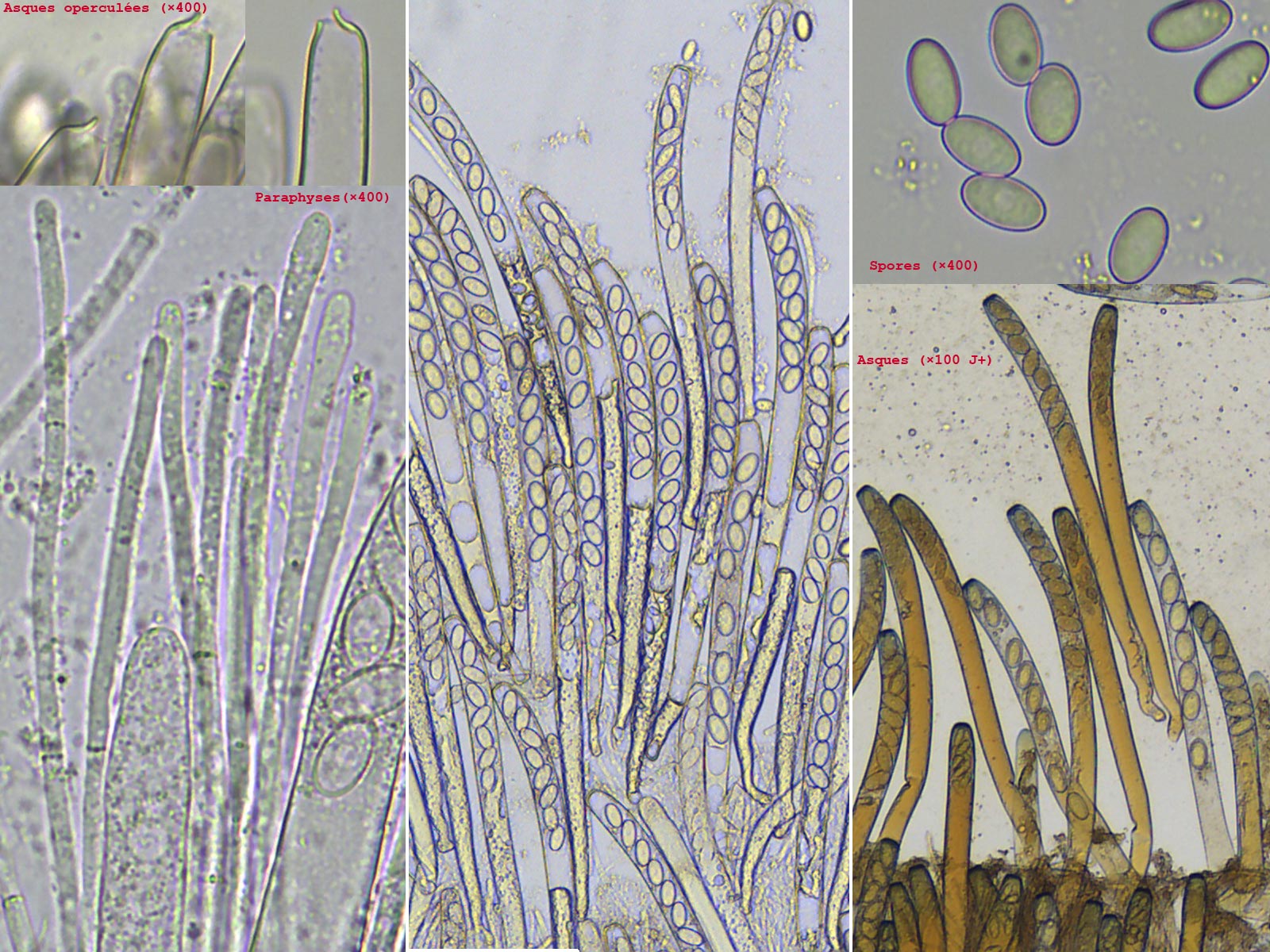 J'ai eu beaucoup de mal à observer les paraphyses... le peu que j'en ai observé : elles sont septées (présence de cloisons) de largeur régulière, à peine renflées au sommet.