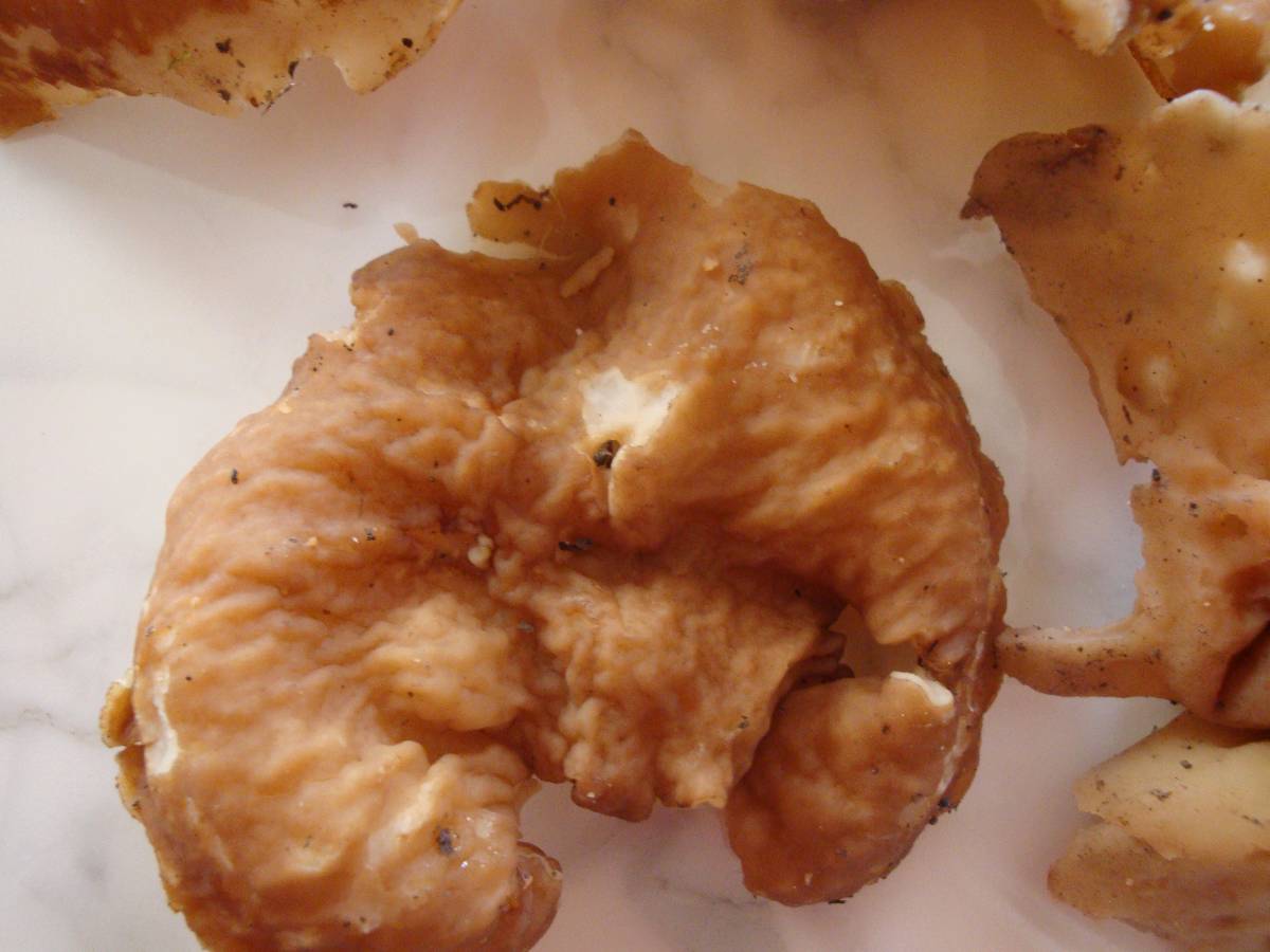Tu devrais aussi sentir ton champignon, s'il s'agit bien de D.venosa, il a une forte odeur de chlore.