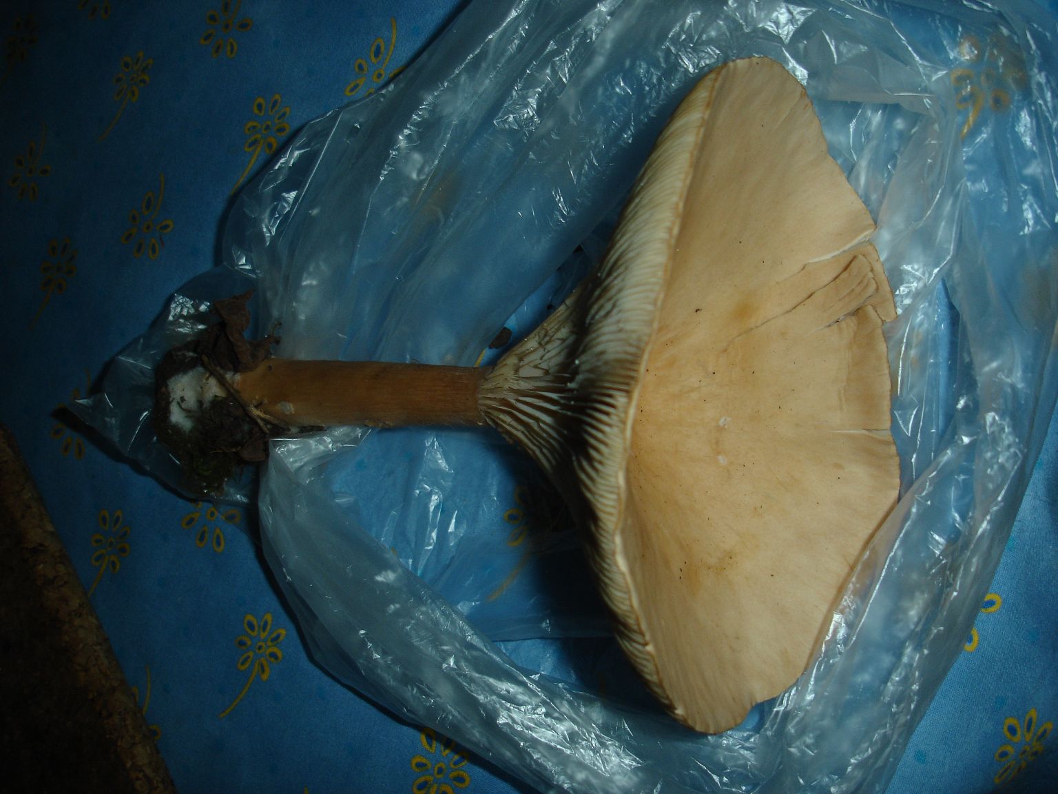 Néanmoins, votre champignon était peut-être comestible, lorsqu'il était plus jeune, et c'était peut-être un Clitocybe geotropa... Je dis bien peut-être, car votre image n'est pas suffisante.