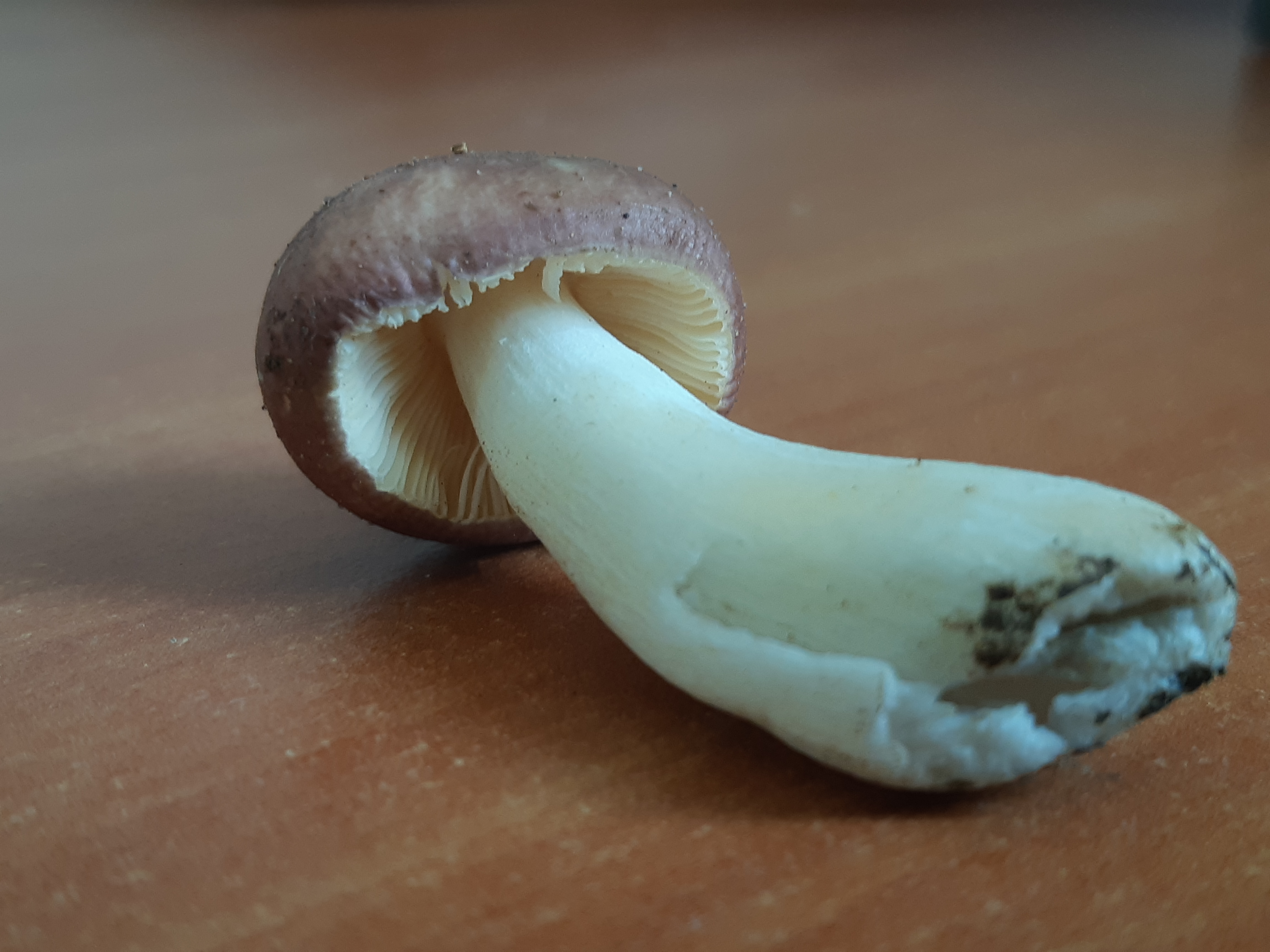 Les bolets ont des tubes sous le chapeau ( une sorte de mousse ), Il s'agit là d'un champignon à lames. Cassant, sans lait, apparemment d'une russule... Essayez de vous trouver un livre de base, pour apprendre quelques notions essentielles sur les différents genres de champignons, sinon, vous ne progresserez pas dans leur reconnaissance. A bientôt jean pierre