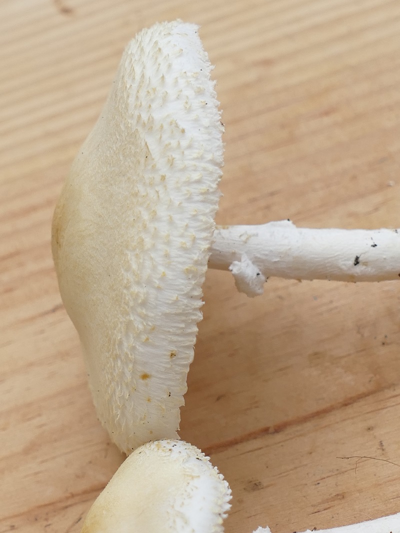 Bonjour, Je viens de trouver un jolie champignon qui dans sa phase juvénile est d'un jaune citron. Il pâlit en devenant mature. Le chapeau mamelonné mesure 66mm, blanc crémeux avec un sommet ocre. il est velouté, mécheux sur sa bordure. les lames sont blanches, libres. Le stipe cylindrique et raboteux mesure 75 mm, présence d'un anneau. Il dégage une odeur assez forte mais désagréable. La chair est blanche immuable. j’hésite entre le genre lepiota et le genre leucoagaricus. Qu'en pensez-vous ?