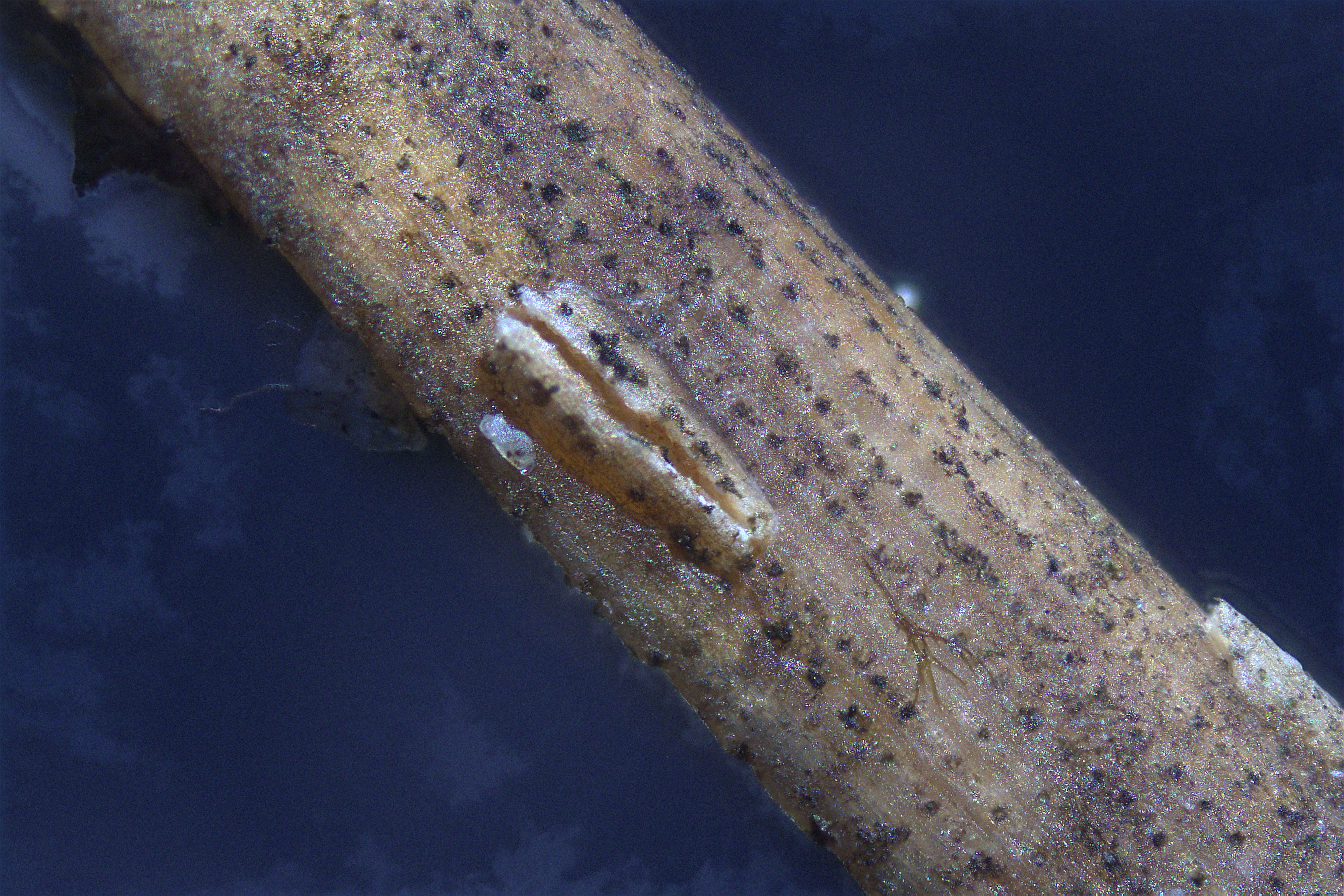 Cyclaneusma minus ? Bonjour, C'est son sosie, Cyclaneusma niveum, qui a des ascospores, des asques et des ascomes plus grands. Probablement moins courant et ne poussant pas (ou rarement?) sur pin sylvestre (essence de pin la plus commune en Franche-Comté). Il faut dire aussi que ces espèces sont probablement négligées car elles sont très difficiles à voir à l'oeil nu. Charles