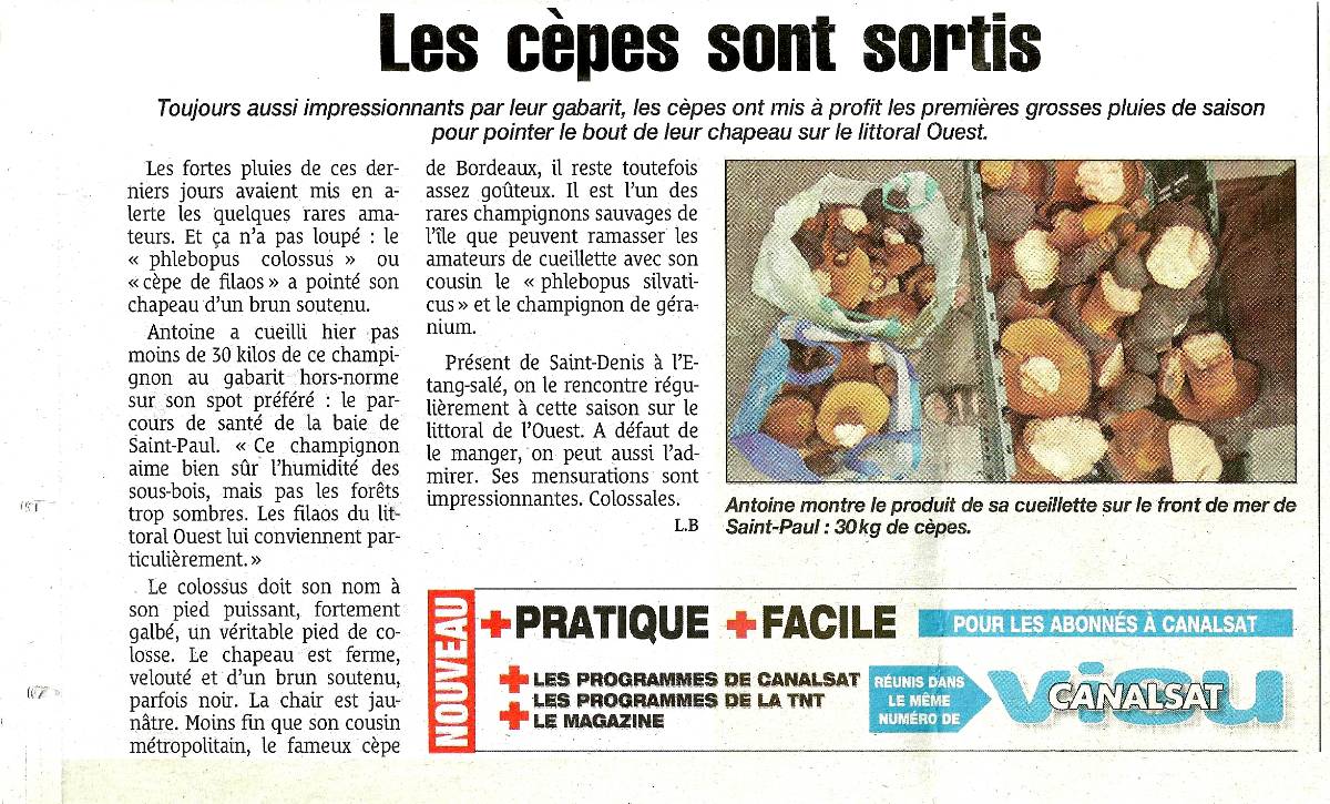 _La Réunion avec ce " bolet" qui pousse dans la baie de Saint Paul à l'Ouest de l'Ile. Si photos vous avez je prépare la fiche de ce colosse : Phlebopus colossus. Voir article de presse ci-dessous. Impressionnant ! Merci pour le partage Rémy.