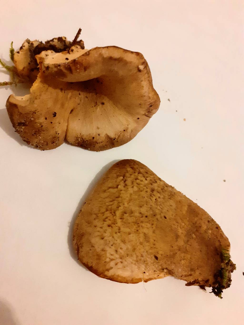 Après réflexion, je pourrais penser à Paxillus panoïdes que j'ai déjà trouvé dans ce secteur, ce qui me fait penser à ce dernier c'est qu'il me semble que les lamelles sont interveinées.