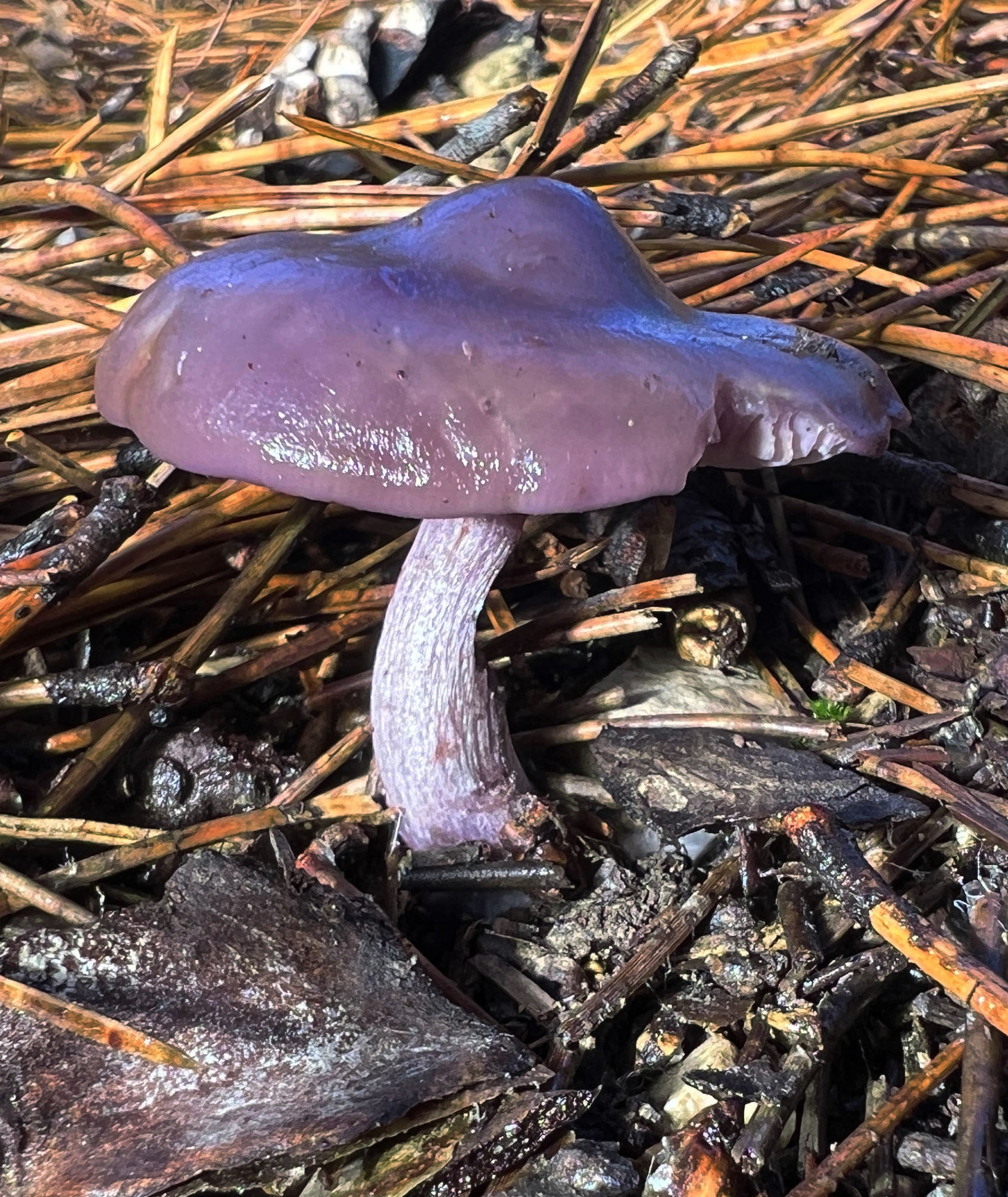 Merci. Ce qui est fort probable, c'est que ce n'est pas Lepista nuda ? En plus du caractère humide du chapeau, laccaria amethysteo-occidentalis ne me semble pas avoir ce petit mamelon central et il est coloré plus vif. Mais je n'ai pas assez d'expérience pour savoir ce qui ressort des variantes liées à l'âge, au biotope, etc.