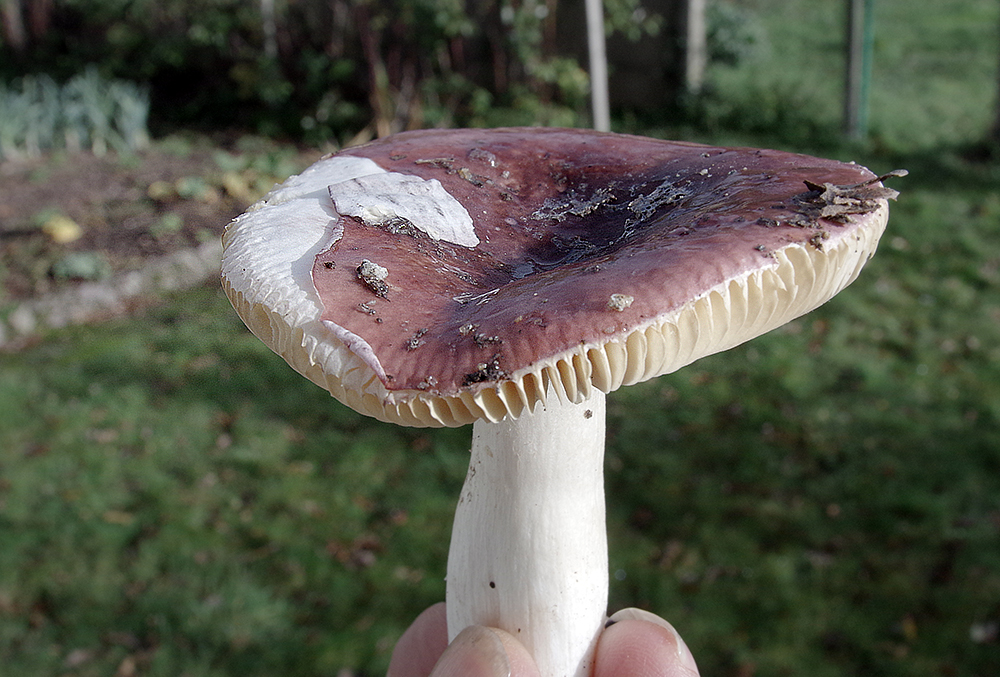 Bonjour, je sais qu'une Russule est difficile à déterminer sur une photo. Tant pis je me lance, depuis trois jour je feuillette, je réfléchie avec mes moyens. Plusieurs pieds le long d'un sentier en bordure d'étang sous futaie de Chênes d"Amérique, quelques charmes et Epicéas. D'abord je vois un net contraste entre le blanc immaculé du pied et le jaune des lames, la cuticule rouge pourpre se soulève dégageant le blanc du chapeau. Pas de goût amère, pas d'odeur particuilière. Le pied est compressible et creux. C'est une belle Russule avec ces contrastes de couleurs (blanc, jaune, rouge) Est-ce