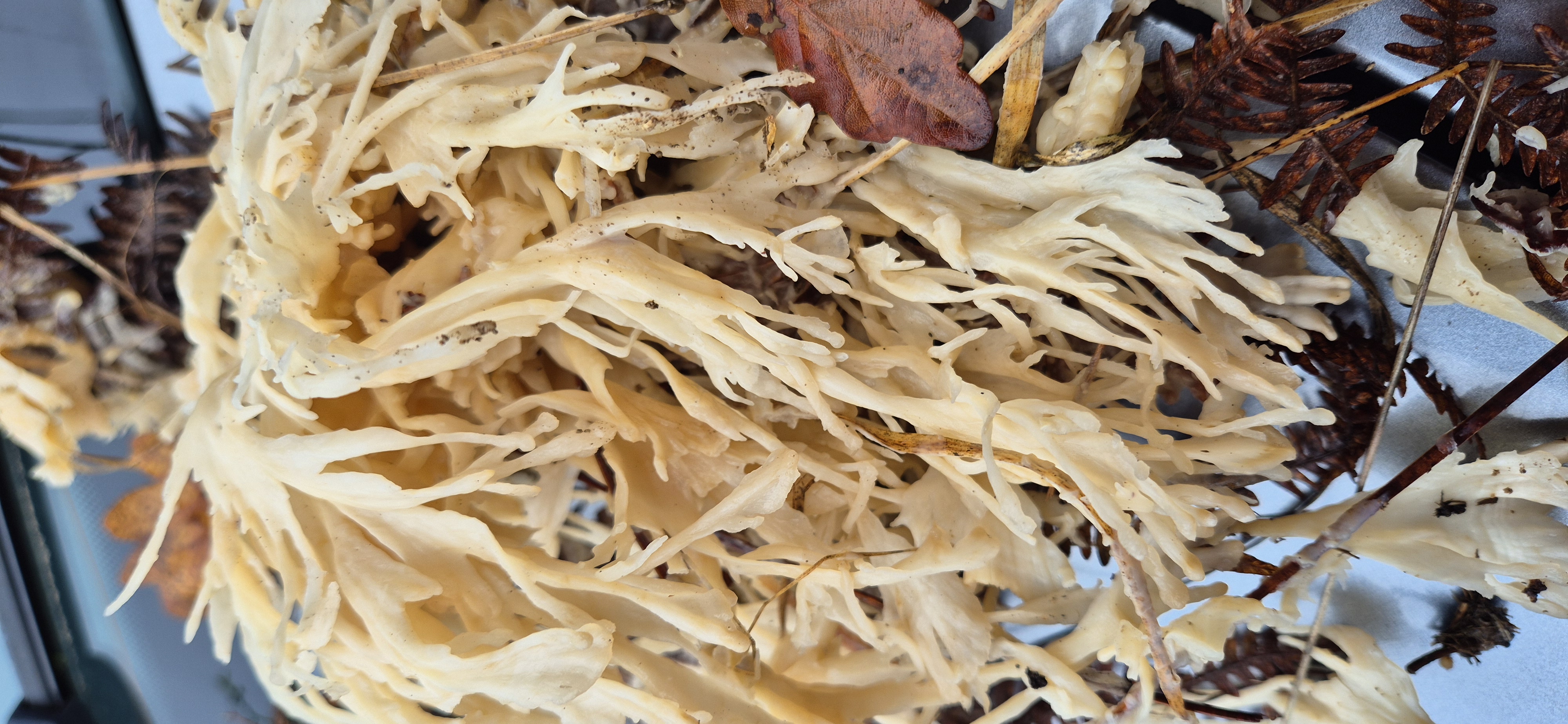 Bonsoir à tous Jean-Pierre Dechaume m'a mis sur la piste d'un Sparassis miniensis (ou minoensis) déjà récolté en 2022 près de Rennes pour la première fois en France et magnifiquement décrit par Pascal Peuch dans le bulletin N° 12 de la FAMO. Un séquençage permettra de confirmer la détermination. Les fructifications fortement lacérées la différencient de crispa et laminosa. La morphologie de spathulata ne convient pas. Merci pour l'aide Rémi