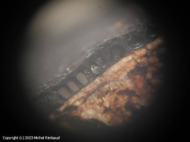 Périthèces de 0.4 à 0.6 mm de diamètre, à peu près au même niveau que le stroma.
