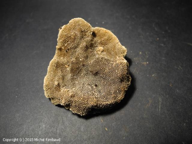 Consistance pâle, liège, subéreuse et molle, dure à l'état sec, mince.