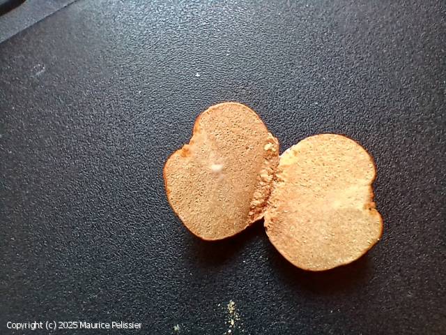 spores ovoïdes pourvues d'épines amyloides (9.76) – 10.04 – 12.72 – (14.4) X (8.96) – 9.57 – 10.56 – (11.97) moyenne 11.41 x 10.29