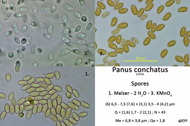 Elliptiques, lisses, hyalines, en partie guttulées,amyloïdes 5,5 -7 x 2,5-3,5 µm. Cheilocystides clavées, à paroi épaisse, nombreuses, 25-50 x 8-13 µm. Pleurocystides plus étroites, 30 x 6 µm.