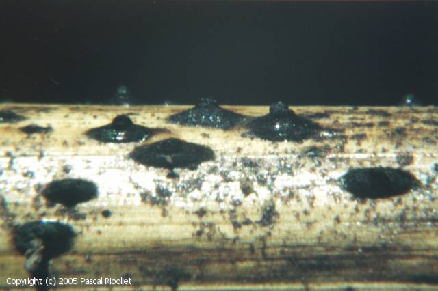 Sur gaines mortes de Phragmites mais tendant à être confluent sur les tiges. Isolé à grégaire. Commun. Juillet-Août.