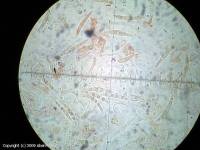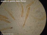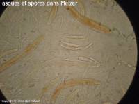 Spores fusiformes-cylindriques, hyalines, uniseptée d'abord puis 3 à maturité, jaune paille, lisses, un peu étranglées aux cloisons, guttulées, souvent un peu arquées, mesurant 21-30 x 3-5 µm.