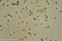 Spores subglobuleuses, mesurant 4,5-5,2 x 3-4,5 μm, non amyloïdes.