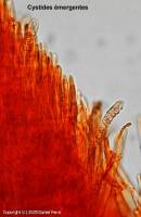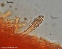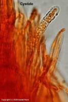 Cystides fortement incrustées au sommet et très grande 40-100 x 4-7 μm.