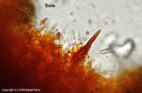 Poils à parois épaisses, fusiformes à apex aigu, brun foncé.