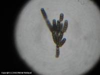 Conidies en longues chaînes ramifiées,pâle ou brun olive,echinulées,verruqueuses de 3 à 10 ( la plupart du temps de 4 à 5 ),septées 20-70 x 5-9 µm (jusqu'à 30-70 )