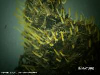Spores allongées, 12-20 x 6-10 microns, plus grandes que celles de Pilobolus crystallinus.