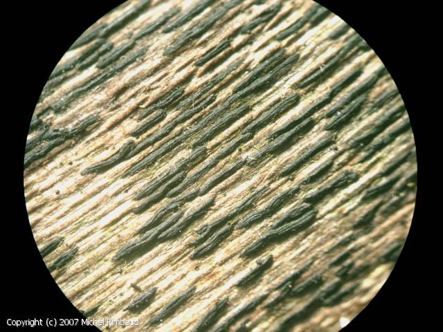 Hysterium lineare Fries (1819), Kongl. vetenskaps akademiens handlingar, 1819, p. 92 (Basionyme) Sanctionnement : Fries (1823)