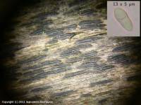 Ascospores hyalines, 1 cloison, 14-20 x 5-7 µm.