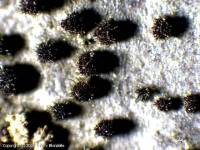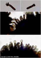 Conidiophores (17–)22–35(–46) μm de long, (8,0–)8,5–10,5(–11,5) μm de large,denses, issus des cellules conidiomatiques externes, dressés, simples, droits, cylindriques à légèrement renflés à l'apex, bruns à brun foncé, plus foncés à l'apex, 0–2 cloisonnés, lisses, avec un pore apical unique et bien visible portant le conidie unique