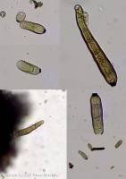Conidies (37–)59–80(–124) × (14,8–)15,8–18,0(–20,0) μm, s’amincissant à 4–10,5 μm à l’extrémité distale, avec une cicatrice brun foncé à noire de 4–8 μm de large à la base, obclavées, parfois rostrées, droites ou courbes, lisses mais occasionnellement ridées avec l’âge, brun pâle à brun, plus pâles vers l’apex, 6–12(–16) distoseptées, avec des lumières anguleuses ; paroi jusqu’à 6 μm d’épaisseur.