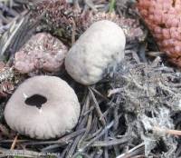 Geopora sumneriana pousse aussi sous les cèdres, est crème-beige à l'intérieur de l'apothécie et brune à l'extérieur et elle possède des spores ellipsoïdes biguttulées.