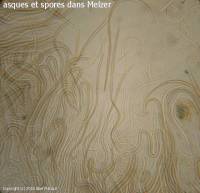 Filiformes, lisses, presque hyalines, multiseptées, 105-110 x 1-1,5µm. Asques octosporés, spores fasciculées-spiralées, 124-139 x 6µm. J-, bituniqués.