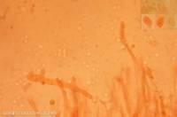 Cylindriques plus ou moins arquées, 27-30-36 x 6-7-7,5 µm, à contenu granulé ou guttulé, blanches en masses. Basides 150-300 x 9-12 µm, à 1-3 stérigmates latéraux, 45 x 3µm, et un stérigmate apical. Hyphes 4-6 µm de diamètre, dressées, paraphysoïdes, cohérentes par la base.