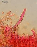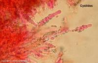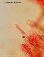 Basides cylindriques clavées, tétrasporiques et bouclées. Cystides cylindriques plus ou moins incrustées, multiseptées et bouclées aux cloisons. Rares leptocystides. Hyphes larges de 4-5 µ, bouclées.