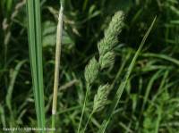 Sur Anthoxanthum odoratum (flouve odorante), Brachypodium phoenicoides, Brachypodium pinnatum, Helictochloa adsurgens, Helictochloa pratensis (avoine des prés), Phleum pratense (fléole des prés), Piptatherum virescens, Poa spp. (pâturins) et Typha spp. (massettes). Eté. Rare.