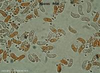 Spores elliptiques à faiblement allantoïdes, lisses, hyalines, guttulées avec parfois une cloison à maturité, (7)-8-10 x 3,5-4,5 µm.