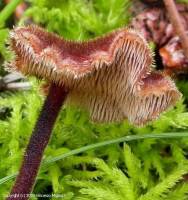 Cette petite espèce, très curieuse et photogénique, et qui ressemble à une brosse minuscule, a un chapeau brun ou roux, velouté, fibrilleux surtout sur les bords, convexe, mince, toujours dimidié (c'est-à-dire, porté par un pied excentré, particularité qui n'existe d'habitude que chez les espèces qui croissent contre les troncs d'arbres), de 1 à 2 cm de diamètre.