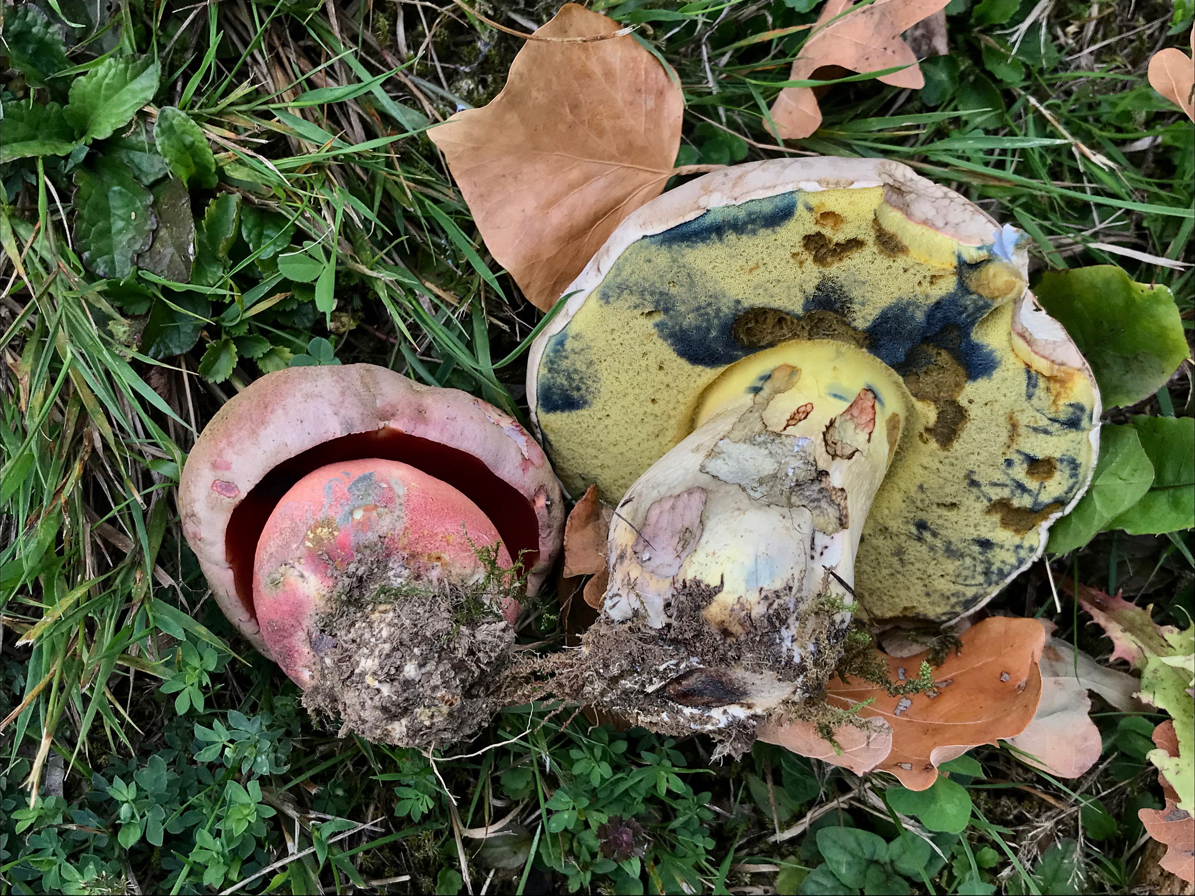 Caloboletus radicans est très présent en ce moment, sous tilleuls ou chênes en ville surtout. Il semble moins exigeant quant à l'humidité du sol. En voici, d'hier, en compagnie d'un des plus jolis bolet, Rubroboletus le-galiae. Fichier(s) joint(s):
