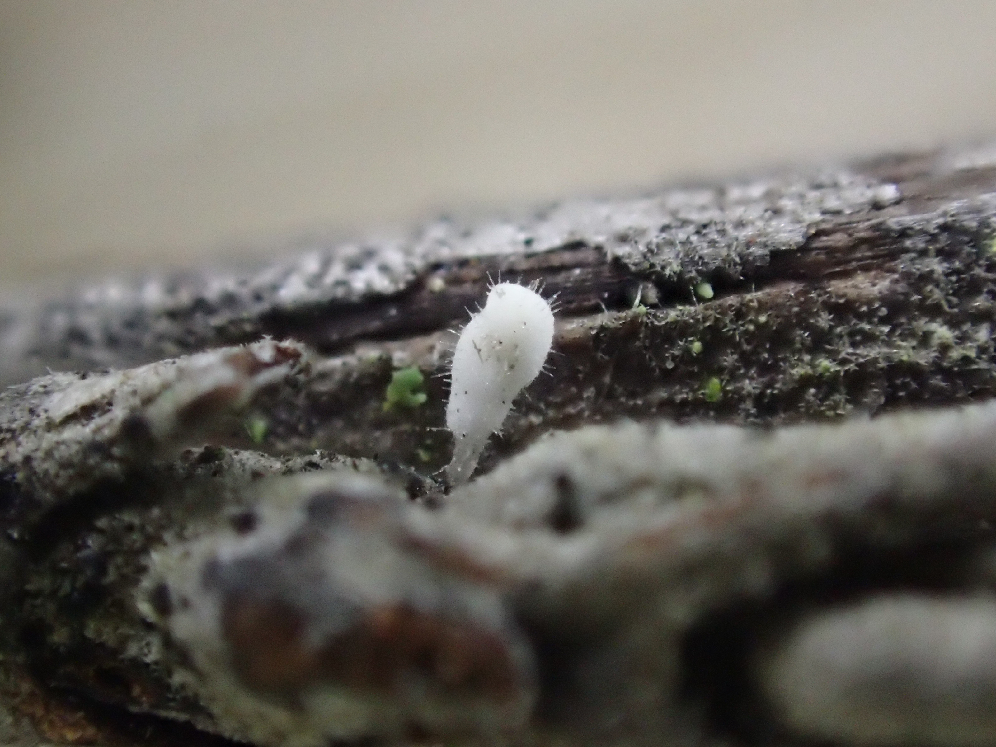 Voici une espèce récoltée sur lavande. En forme de clavule d'à peine 1mm de haut. Les spores mesurent 10.5 x 9.5 µm. Les basides sont bisporiques. Présence de poils très longs, jusqu'à 200µm. Peut-être une Typhula ou une Physalacria ? Avez vous une idée ? Merci d'avance