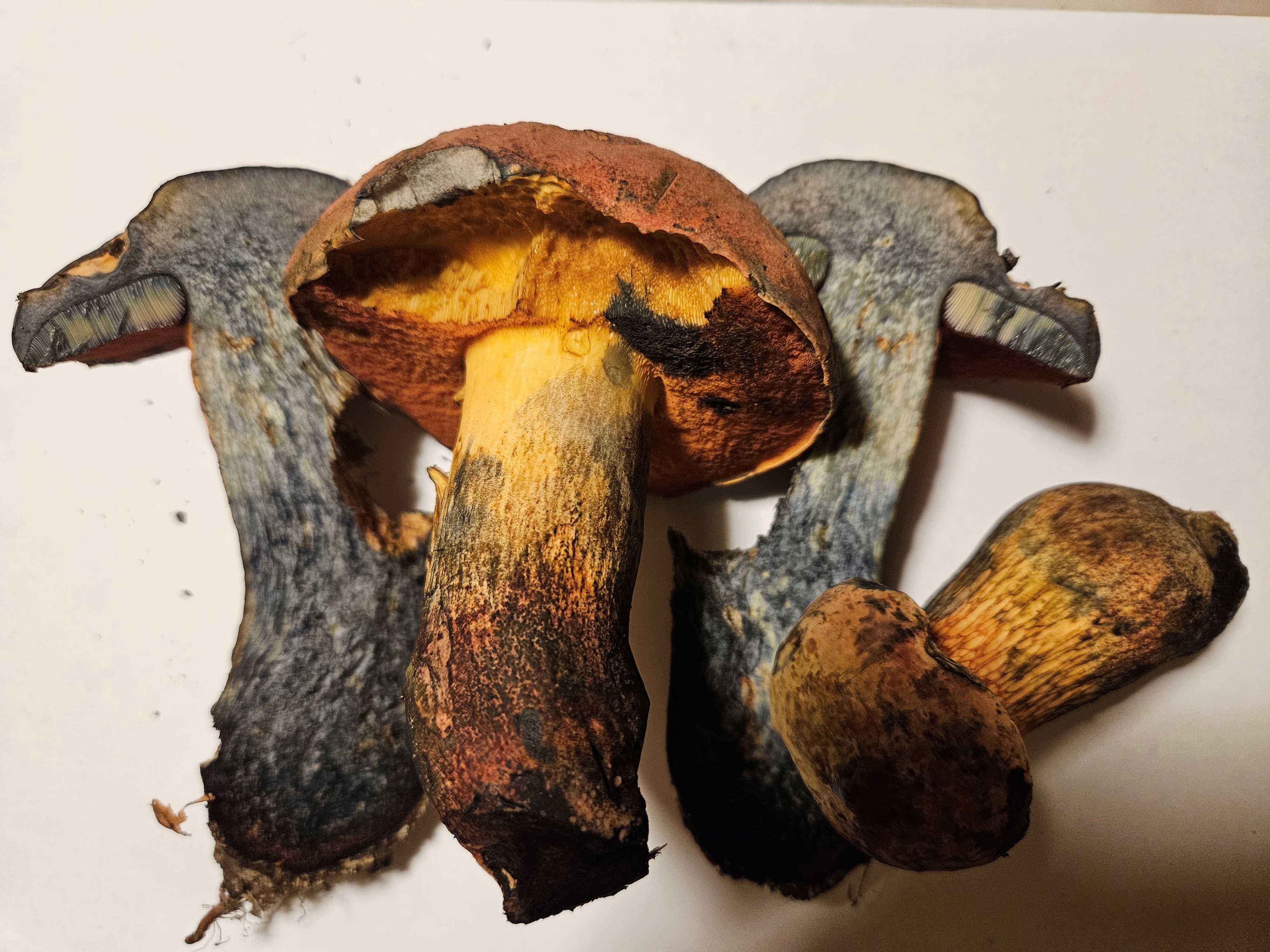 Pour mémoire, tubes jaunes (quasi pas bleuissants) ; pores rouges orangés ; cuticule brun foncé d'aspect velouté ; chair de la base du pied couleur betterave.