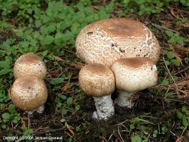 Agaricus impudicus, a des squames moins marquées, plus foncées.