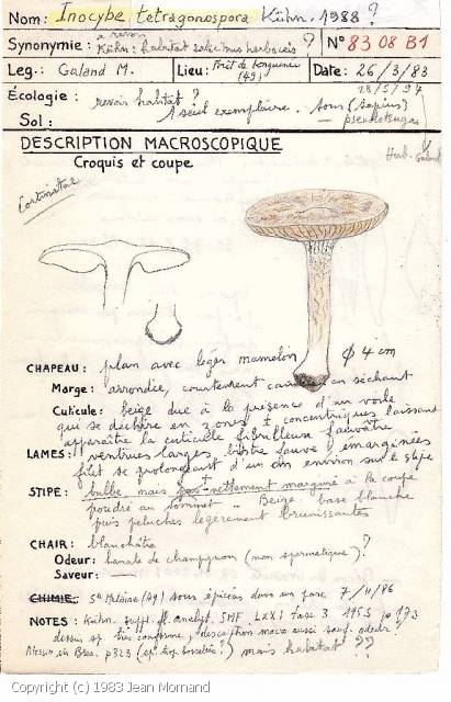 Inocybe tetragonospora Kühner (1988), Documents mycologiques, 19(74), p. 26 (Basionyme)