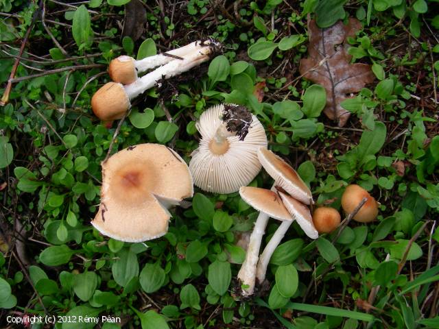 Dans l'herbe des prés, clairières gramineuses. Automne. Peu fréquent