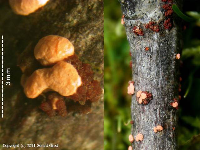 L'anamorphe en coussinet de couleur rose pâle et brièvement à longuement stipité est souvent appelé Tubercularia vulgaris.
