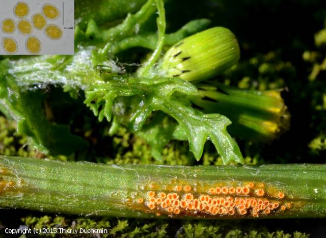 Espèce parasitant les tiges et feuilles de Senecio vulgaris, Senecio squalidus, Calendula officinalis, également, mais rarement Bellis perennis.