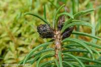 Sporocybe azaleae (Peck) Saccardo (1886), Sylloge fungorum omnium hucusque cognitorum, 4, p. 608 Cephalotrichum azaleae (Peck) Kuntze (1898), Revisio generum plantarum, 3, p. 453 Pycnostysanus azaleae (Peck) E.W. Mason (1941), Mycological papers (Commonwealth Mycological Institute), 5, p. 130 Briosia azaleae (Peck) Dearness (1941), Mycologia, 33(4), p. 365 Seifertia azaleae (Peck) Partridge & Morgan-Jones (2002), Mycotaxon, 83, p. 350 (nom actuel) References : Ellis p. 222 pl. 1008 Groupe : Pyrenomycetes Classification : Ascomycota / Dothideomycetes / Pleosporales / Melanommataceae Chapeau/Fructification : Synnemata olivatre fonce ou brun noiratre avec un saupoudrage de conidies pales a l'apex allant jusqu'a 2mm de haut et 0,5mm de large. Le synnemata apparait comme recouvert d'epines noires. Habitat : Sur bourgeons terminaux, tiges et fleurs de Rhododendron spp. (rhododendrons et azalees) et autres Ericacees. La cause de l'explosion des bourgeons est due a la brulure des rameaux. Les pousses feuillues se necrosent. Printemps-debut de l'ete. Transmit et introduit pour la premiere fois en 1930 par la cicadelle du rhododendron (Graphocephala fennahi). Spores : Conidies 4-6 x 6-12µm, brun pale ou olivatre. Comestibilite : Sans interet |