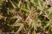 Noms francais : Oidium du lilas Synonymes : Erysiphe syringae Schweinitz (1832), Transactions of the American philosophical Society, series 2, 4(2), p. 270 (Basionyme) (nom actuel) Microsphaera syringae (Schweinitz) Magnus (1898), Berichte der deutschen botanischen Gesellschaft, 16, p. 67 Groupe : Pezizes Classification : Ascomycota / Leotiomycetes / Erysiphales / Erysiphaceae Chapeau/Fructification : Cleistostheces (chasmothecies) spheriques ornees d'appendices hyalins dichotomiques se divisant sur trois dimensions. Habitat : Sur Syringa x chinensis (lilas de Rouen), Syringa vulgaris (lilas commun), Chionanthus virginicus (arbre a neige), Fraxinus ornus (orne) et Ligustrum ovalifolium (troene de Californie) ainsi que d'autres Oleacees. Frequent. Comestibilite : Sans interet Commentaires : Se serait presque totalement fait remplacer par Erysiphe syringae-japonicae. |