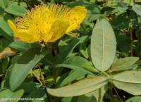 Melampsora androsaemi (DC.) N. Schwab 2024, Buletin Mycologique et Botanique Dauphine-Savoie, 252, p. 47 (nom actuel) Groupe : Rouilles Classification : Basidiomycota / Pucciniomycetes / Pucciniales / Melampsoraceae Chapeau/Fructification : Infection systemique, ne deformant pas la plante, induisant des taches foliaires chlorotiques formant une mosaique jaune, orange, rouge puis finalement brune. Cycle autoecique, produisant des ecidies et des telies. Écidies (I) de type Caeoma, en forme de coussin, hypophylles, erompants, de couleur orange clair a orange, palissant a la dessication jusqu’a devenir completement blanches sur exsiccatum. Telies (III) non observees, rarement presentes d’apres la litterature. Odeur nulle. Habitat : Sur les millepertuis mediterraneens Hypericum androsaemum, H. hircinum, H. × inodorum (sect. Androsaemum) et H. calycinum (sect. Ascyreia). Spores : Écidiospores (I) mesurant (20,8) 22,3–30,5 (39,7) × (15) 17,9–24,5 (26,5) μm, Me = 26 × 20,9 μm, Q = (1) 1,1–1,4 (2,1), Qe = 1,3 (n = 34), generalement subglobuleuses ou ellipsoidales, parfois clavees, pyriformes ou polygonales, sans plaquettes labiles, avec un contenu de couleur orange pale, a ornementation fortement verruqueuse, verrues atteignant 1,5 μm de hauteur, paroi epaisse, hyaline, mesurant entre 1 et 2 μm. Paraphyses absentes. Teliospores (III) non observees. Comestibilite : Sans interet Commentaires : Fiche reproduite d'apres : Schwab, N. (2024). Notes sur quelques micromycetes phytopathogenes interessants ou rares. Nomenclature et taxinomie de la rouille Melampsora androsaemi comb. Nov. (Pucciniales, Melampsoraceae). Bulletin mycologique et botanique Dauphine-Savoie, 252, 46‑58. |
